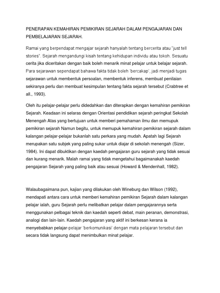 Penerapan Kemahiran Pemikiran Sejarah Dalam Pengajaran Dan Pembelajaran Sejarah Pdf