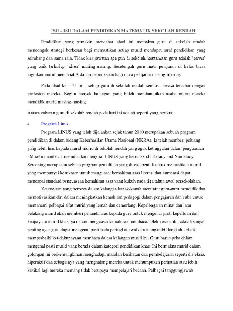 Isu-isu pendidikan di Malaysia menyentuh tentang aspek kebimbangan pihak kerajaan terhadap kualiti pendidikan di sekolah-sekolah. Hanya kemudahan radio. Pembelajaran berkesan merupakan proses interaktif yang memberi ruang kepada pelajar untuk berinteraksi saling bantu menjalankan tanggungjawab membina keyakinan diri dan seumpamanya.