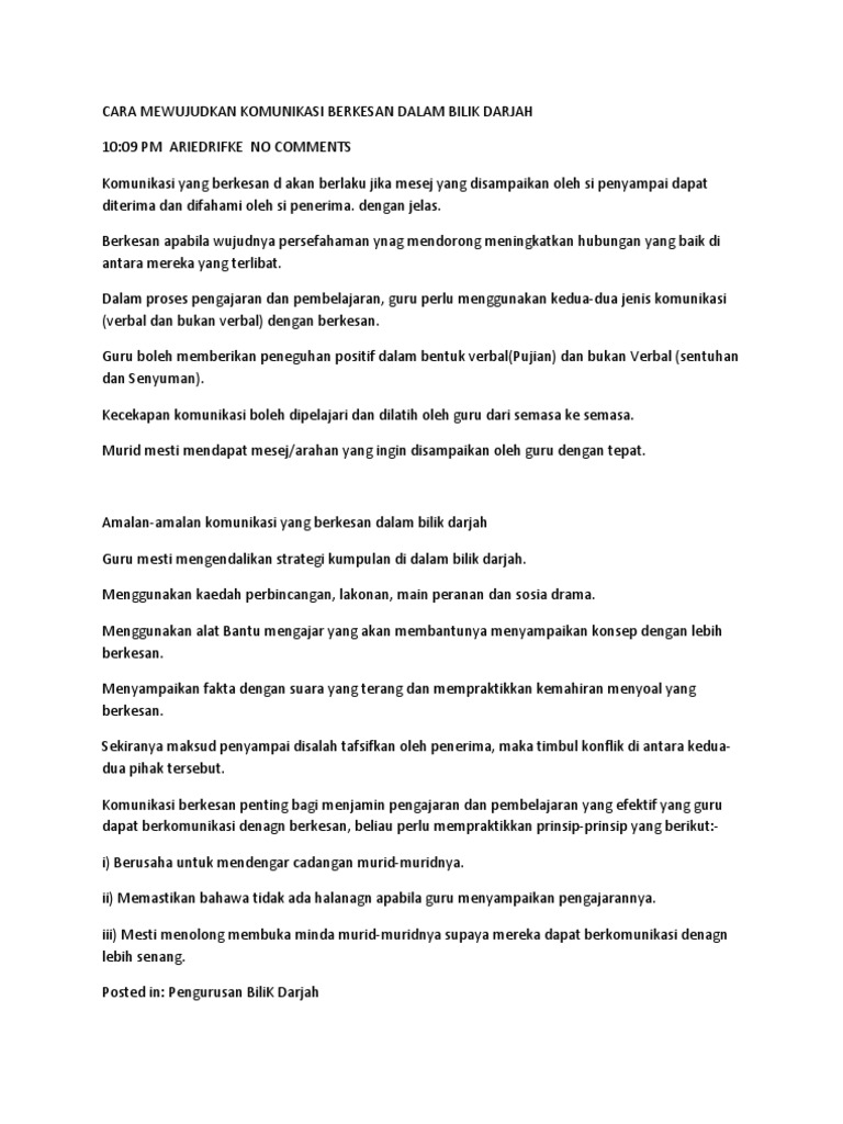 Cara Mewujudkan Komunikasi Berkesan Dalam Bilik Darjah Pdf